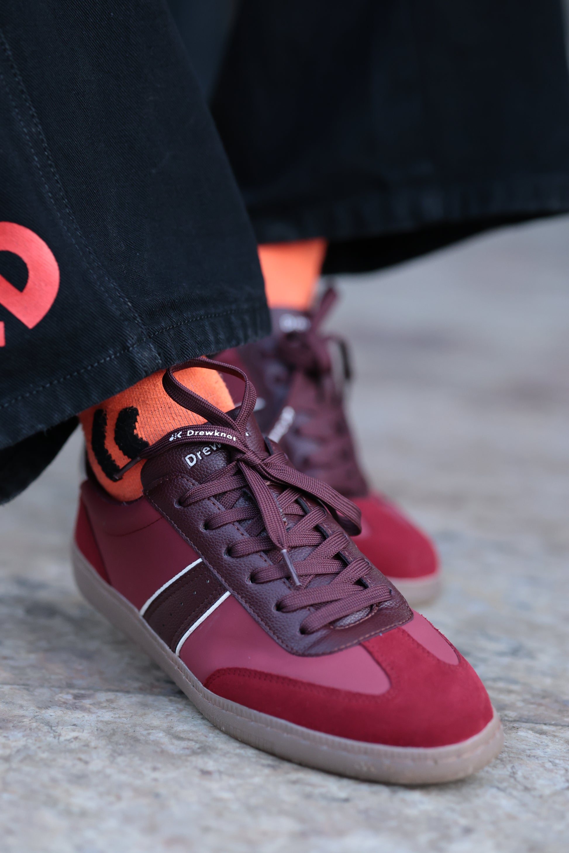 The Drewknot Men’s Skyrise Crimson Peak stands out with a bold blend of deep burgundy leather, rich crimson suede panels, and clean white accent stripes that add sharp contrast. Designed for the Skyrise series, this sneaker combines premium materials with everyday functionality. The breathable mesh lining and cushioned footbed keep comfort front and center, while the gum-toned TPR outsole delivers dependable grip and durability. Perfect for those who want their footwear to make a refined yet confident statement.