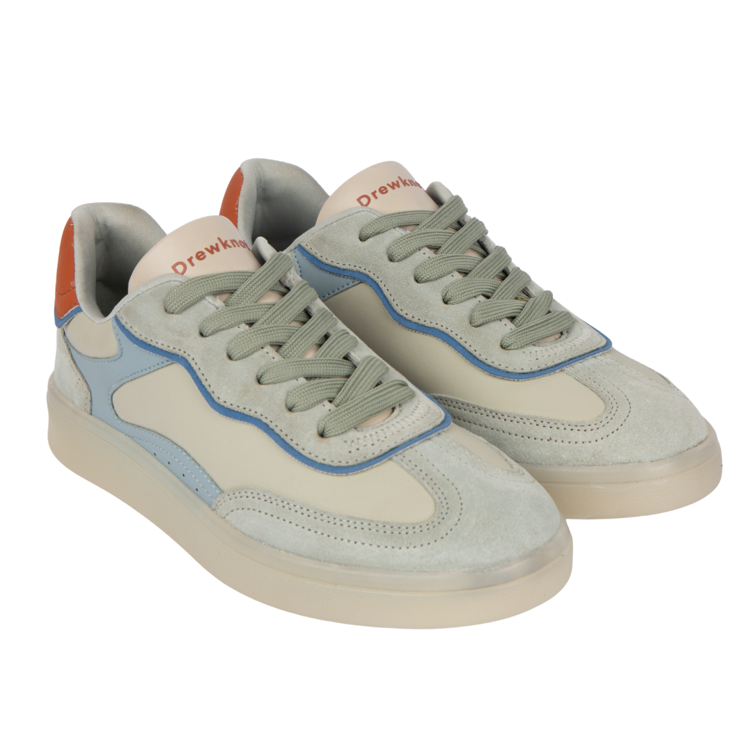 The Drewknot Women’s Nivra Sage Coast blends natural calm with subtle vibrance. Featuring a soft sage green leather and suede base, highlighted with sky-blue trim and finished with a warm tan heel accent, it delivers a fresh, coastal-inspired aesthetic. Built for comfort with a breathable mesh lining and cushioned footbed, this sneaker also boasts a high-traction TPR outsole for everyday versatility. Perfect for pairing with light-wash denim, flowy skirts, or athleisure looks.